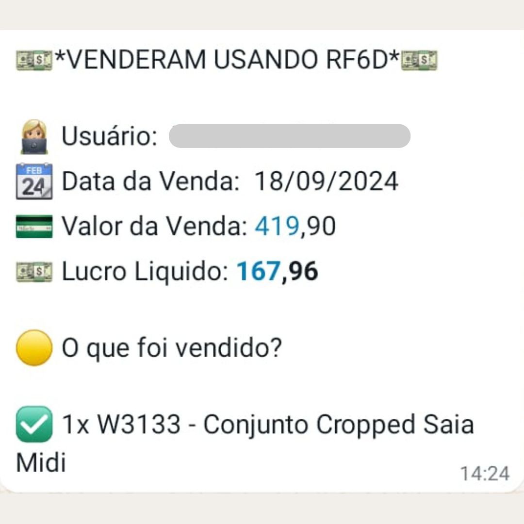 Eu estava procurando uma maneira de complementar minha renda sem precisar investir muito, e o RF foi a solução perfeita. Em menos de uma semana, consegui minhas primeiras vendas e já recuperei o valor investido e agora é só lucro. O suporte e as estratégias são incríveis Hoje, tenho um negócio lucrativo que cresce a cada dia.